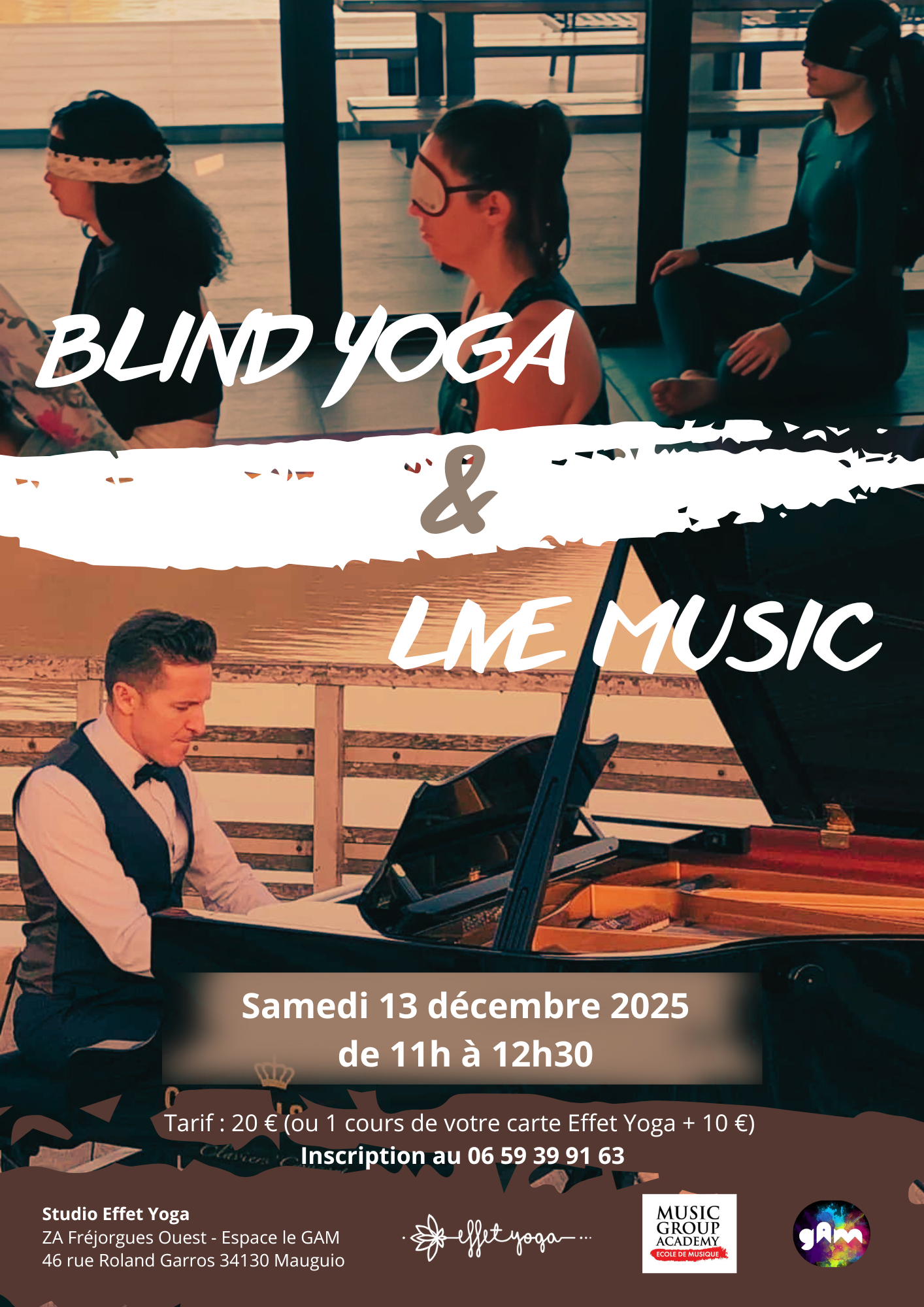 • Blind Yoga & Live Music (piano avec Music Group Academy) samedi 13 décembre 2025 de 11h à 12h30 au Studio Effet Yoga Montpellier Fréjorgues.