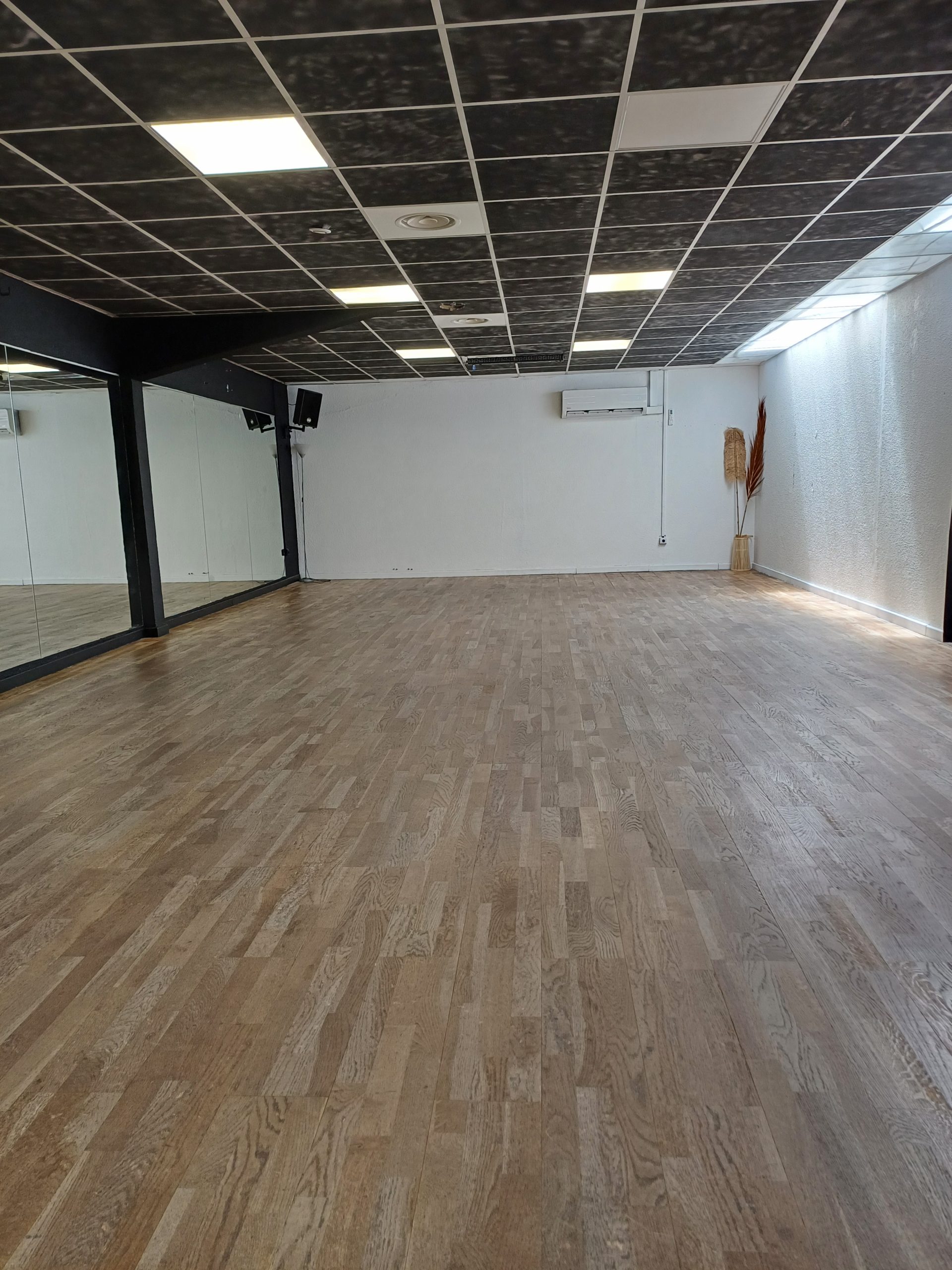 Espace de 80m2 avec miroirs, parquet au sol, climatisation réversible, sono, parking gratuit, vestiaire avec wc et douche, frigo, distributeurs de boissons et snacks, salle d’attente commune. Contact : 06 59 39 91 63.